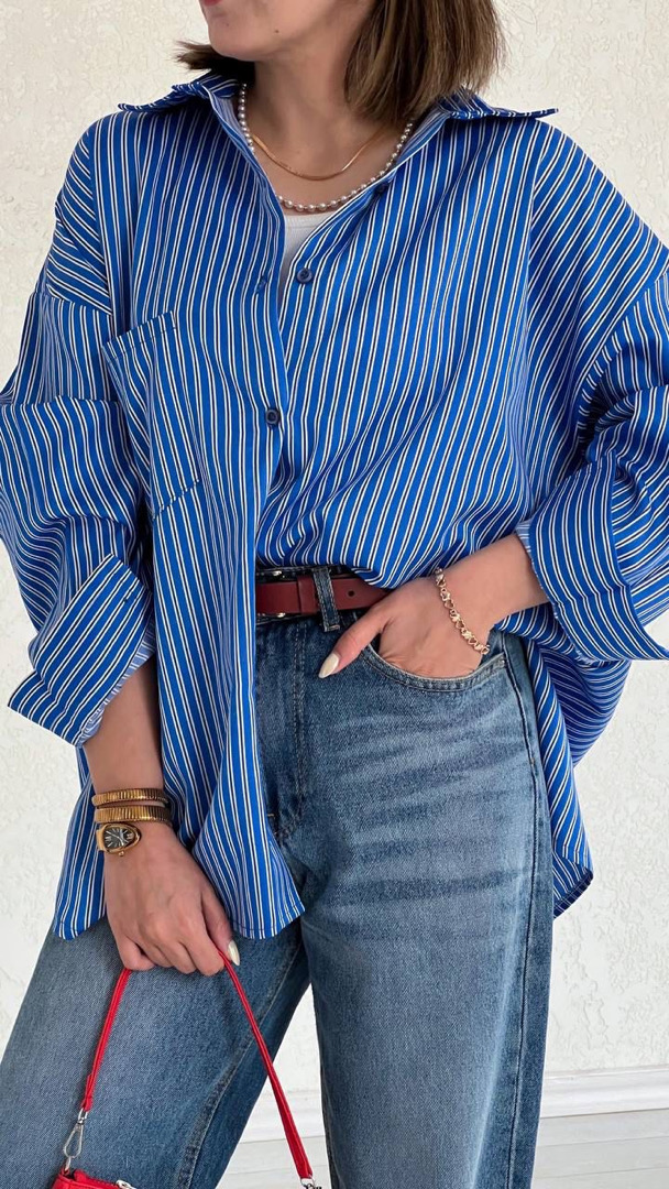 شومیز راه راه آبی تیره