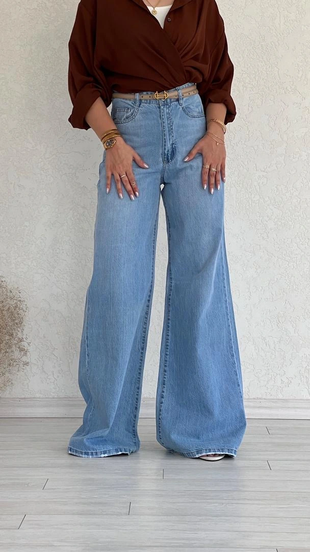 شلوار فول بگ آبی یخی