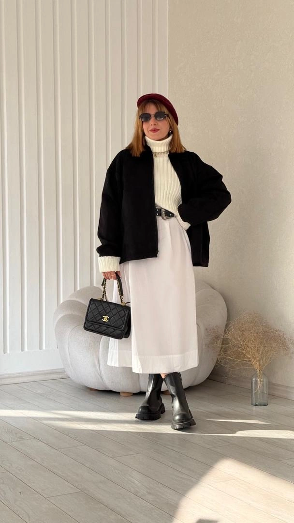 نحوه استایل برای موقعیت های رسمی: برای استایل رسمی کافی است آن را با بافت های مختلف از جمله بافت یقه اسکی و دامن زمستانی ترکیب کنید. برای تکمیل استایل خود می توانید از انواع نیم بوت های رنگی و کیف استفاده کنید. توجه داشته باشید که استفاده از اکسسوری ها از جمله کمربند و... باعث درخشش چند برابر شما خواهد شد.