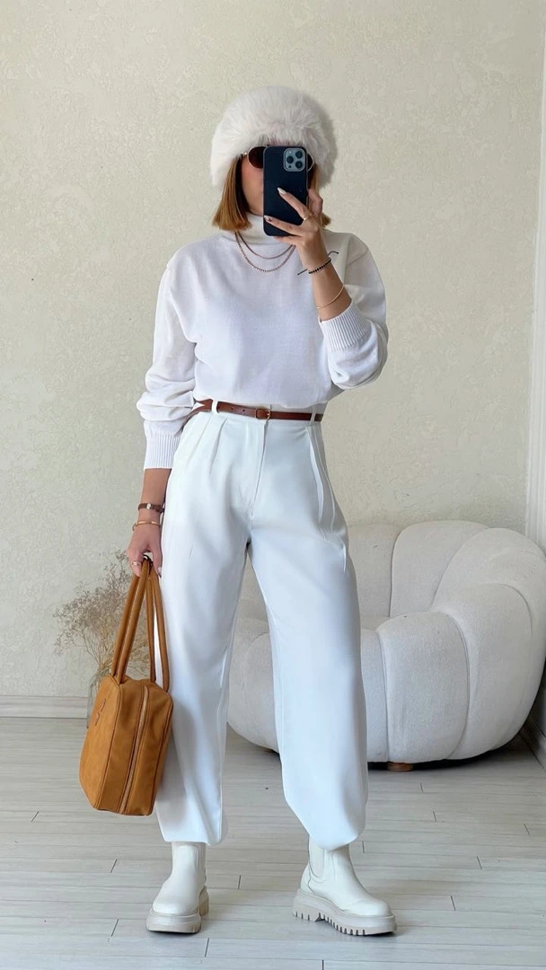 Plain white turtleneck